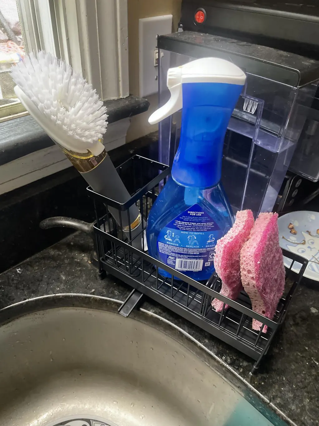 Sponge Holder for Kitchen Sink, Sink Caddy Organizer with High Brush Holder, Kitchen Countertop Organizers and Storage Essentials